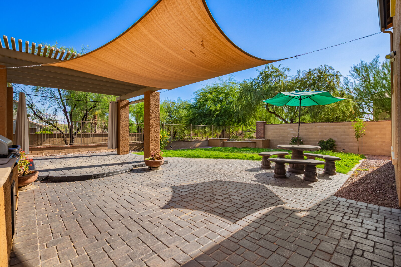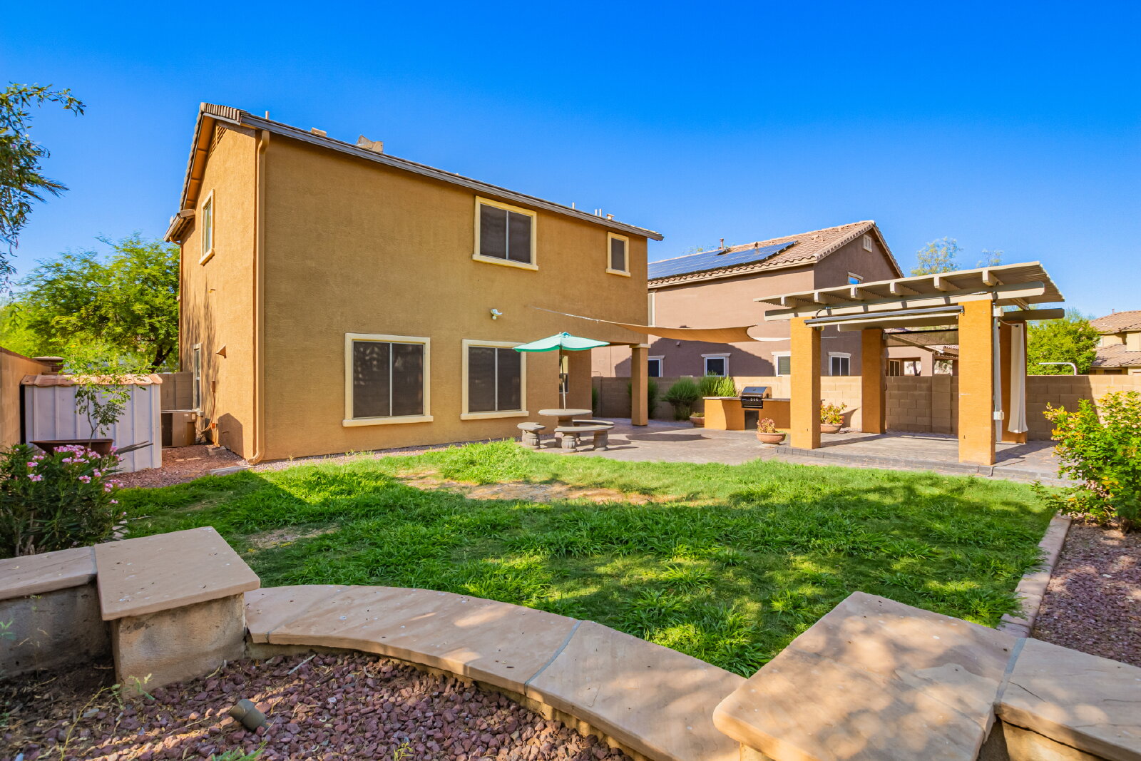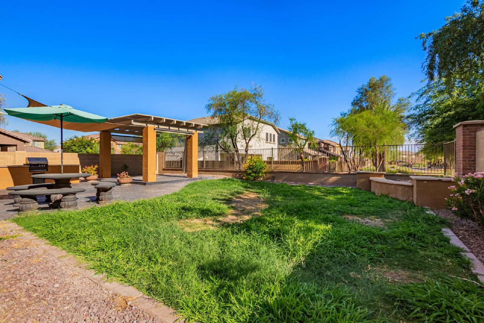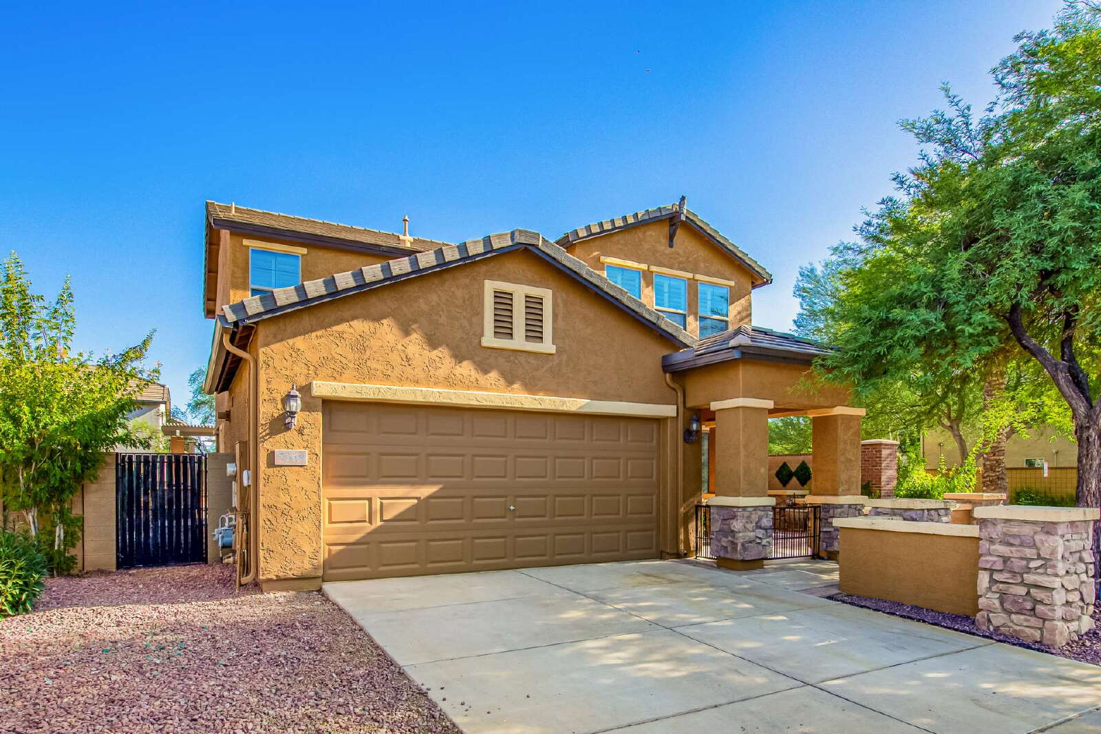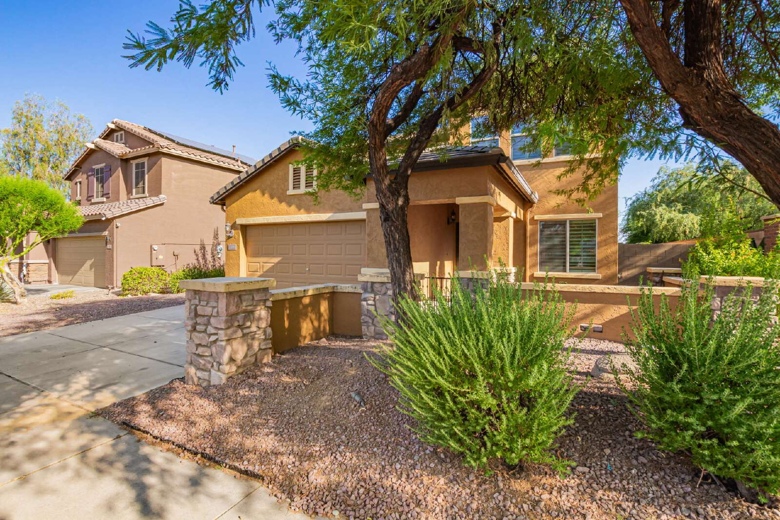 Updated 3-bed, 2.5-bath home on the desirable Peoria/Glendale border. Features include plantation shutters, ceiling fans, updated LVP flooring and recessed lighting, fenced front courtyard, spacious covered patio with built-in BBQ, open floor plan, and functional kitchen with island, ample storage with a bonus area under stairs, and walk-in pantry. Generous master suite offers double sinks and a large walk-in closet. Large laundry room with washer and dryer. Conveniently located near Loop 101, Arrowhead Towne Center, State Farm Stadium, Desert Diamond Arena, Rio Vista Park, and more. A perfect blend of comfort and location!
